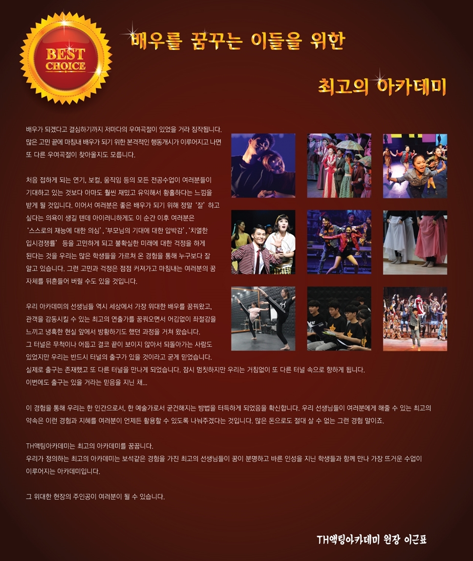 TH액팅아카데미는 ‘세상에서 가장 위대한 배우’를 만드는 연기학원입니다.