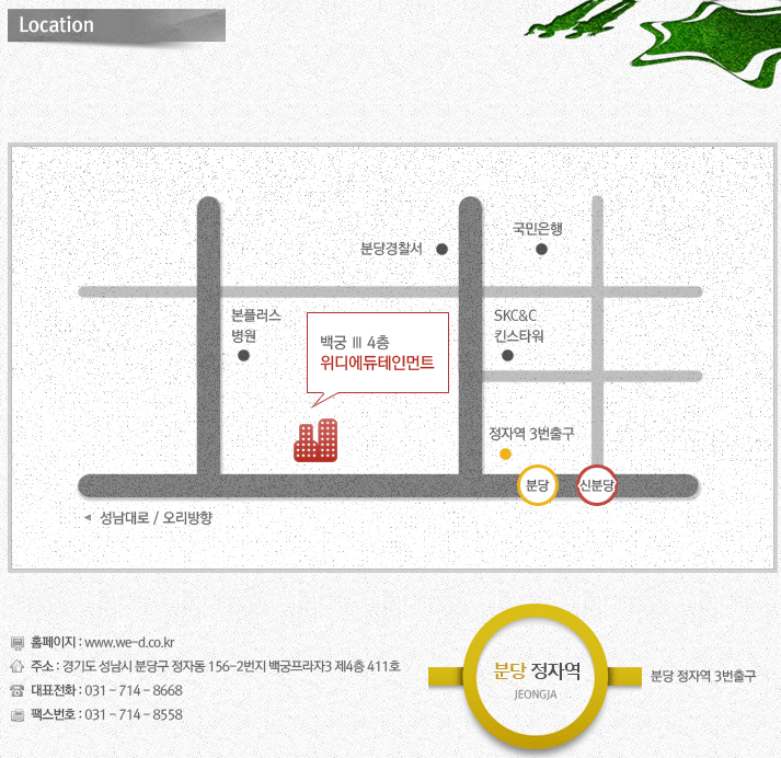 | 주소 | 경기 성남시 분당구 성남대로331번길 3-9, 4층411호 |