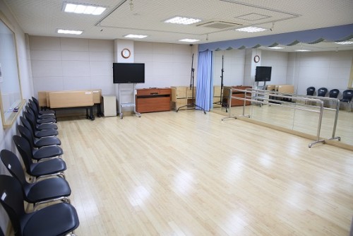 | 보유장비 | 촬영용 카메라 4대, 수업용 캠코더 8대, 빔프로젝터 및 스크린 3대, 모든 강의실 TV모니터 및 조명 설치, 피아노 3대, 앰프 5대, 발레바 2개, 개인방송장비 |