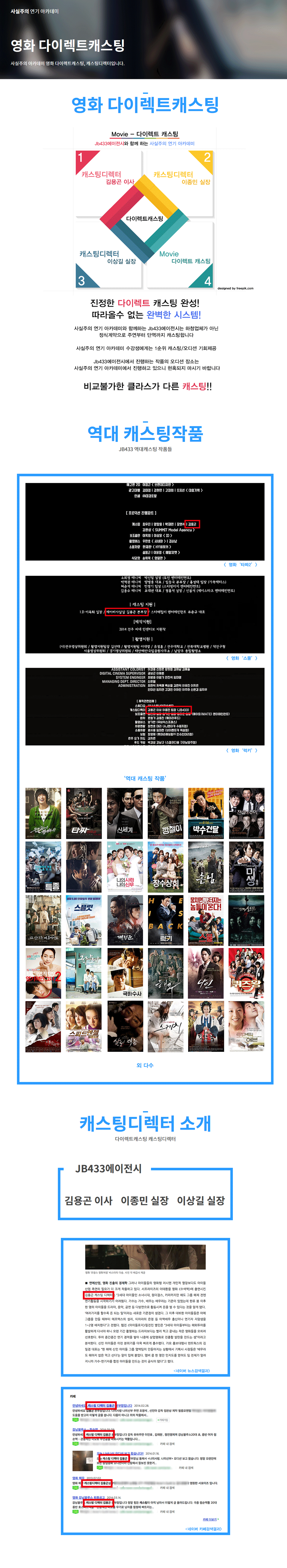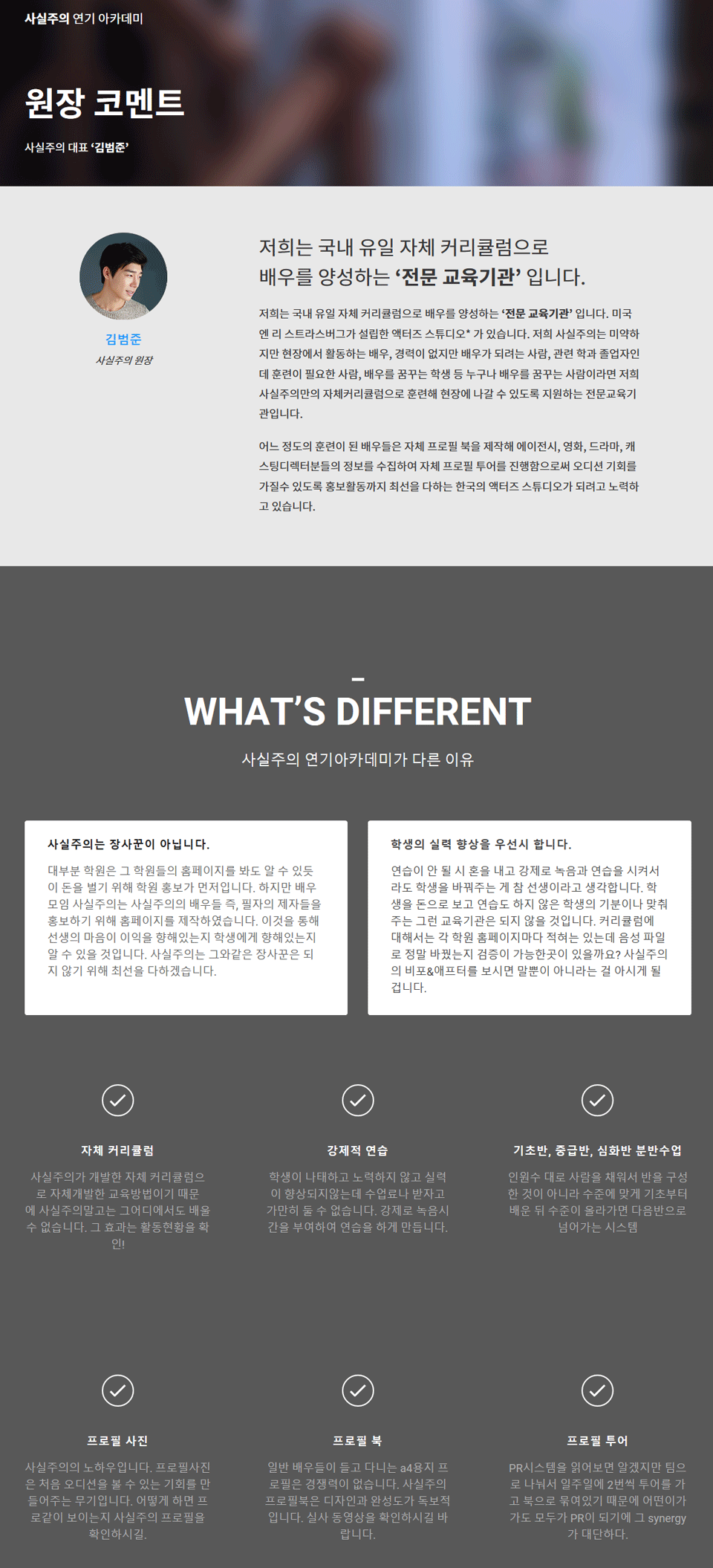 | 학원특징 | #스파르타수업, #캐스팅디렉터, #오디션기회 |